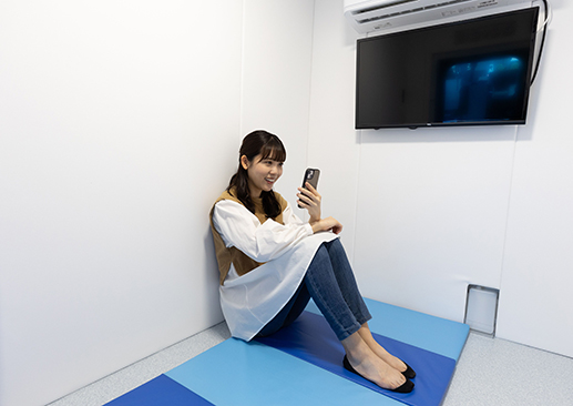 着替えも準備も不要。靴を脱いでいただき、あとは高気圧酸素ボックスの中でリラックスしたり、仕事をしたり、ごゆっくりとお過ごしください。終了時間になると、スタッフがお知らせいたします。