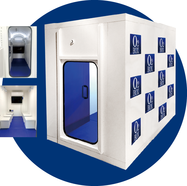 一流アスリートも愛用する酸素カプセルの進化版、1名〜6名まで利用可能な「高気圧酸素ボックス」。